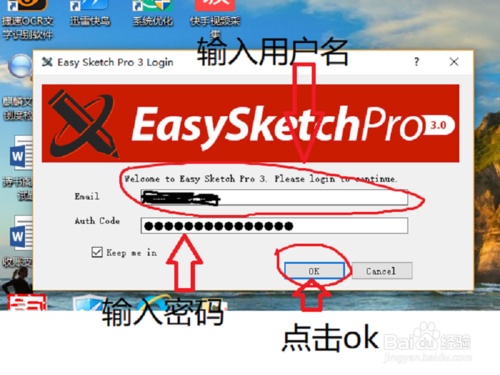 第一步、打開(kāi)EasySketchPro3,輸入用戶名,輸入密碼,點(diǎn)擊ok。