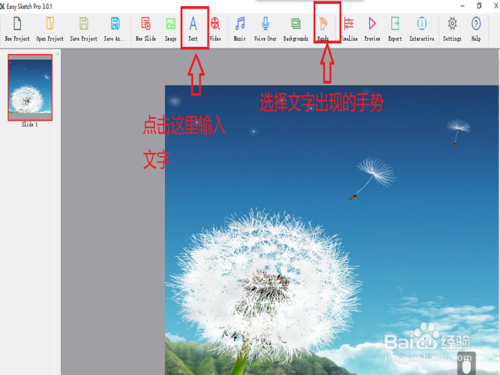 第四步、先選擇文字出現(xiàn)的手勢(shì),再單擊A輸入文字。