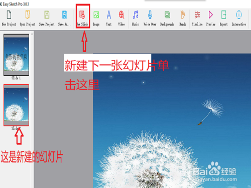 第五步,單擊new Sliad新建第二張幻燈片。第二張幻燈片新建后其它方法第一張做法一樣。
