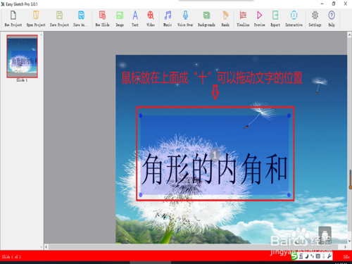 在每一張幻燈片中,我們點(diǎn)擊“Image”(如上圖中②)即可插入圖片,點(diǎn)擊“Text”(如上圖中③)即可插入文字,并適當(dāng)調(diào)整它們的位置。