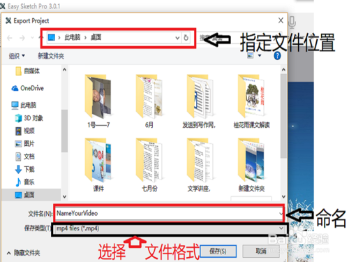 第八步、指定文件位置、選擇文件格式、為文件命名保存。
