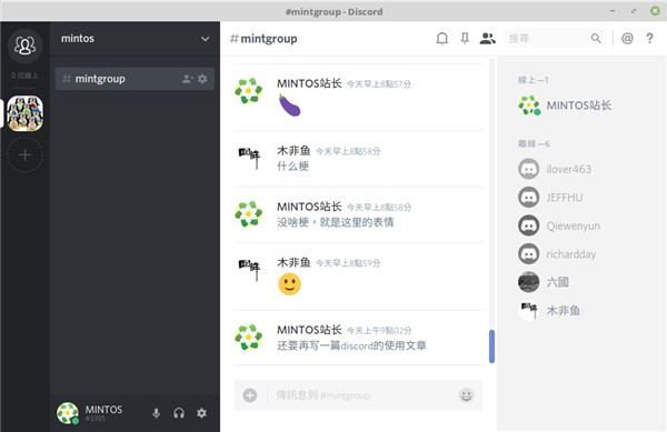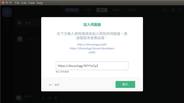 以加入MINTOS群為例,點(diǎn)擊“加入伺服器”后,輸入群的鏈接,即可加入。https://discord.gg/WYYzCpZ