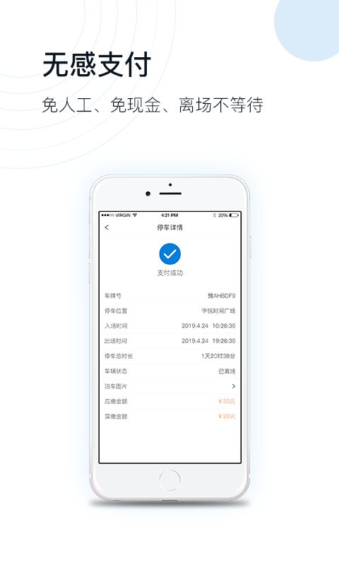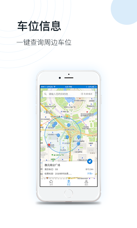 分秒易停APP是一款智能停車服務(wù)應(yīng)用,實現(xiàn)免人工免現(xiàn)金,離場不等待,無感在線支付,還能一鍵查詢周邊停車位,快速指引您前往車場,避免亂收費、收費不透明的黑停車位!