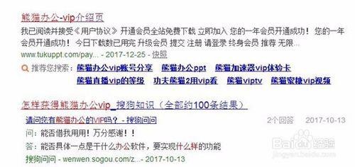 首先在搜狗瀏覽器中輸入熊貓辦公VIP并點(diǎn)擊搜索,如下圖所示。