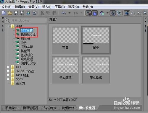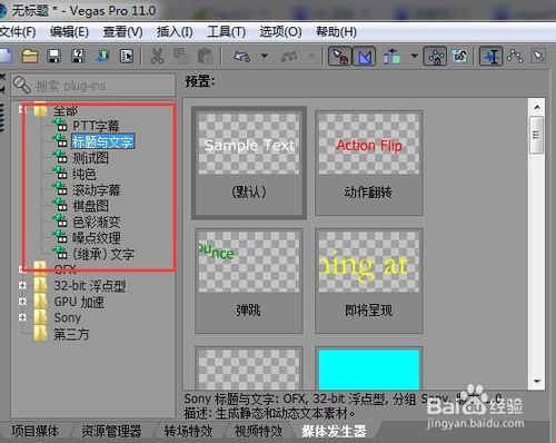 在vegas的主面板里面找到“媒體發(fā)生器”,點(diǎn)一下,即可切換到其分項(xiàng)面板。