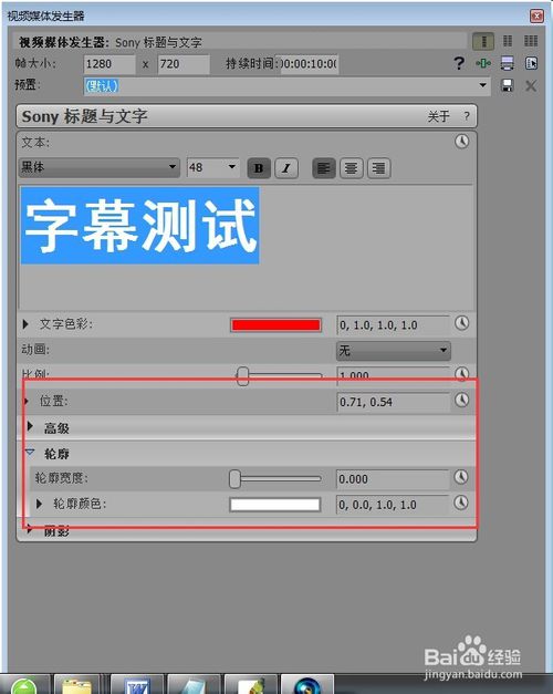 在“屬性參數(shù)對(duì)話框”中,我們可以設(shè)置字幕的各個(gè)參數(shù):時(shí)長、顏色、位置、大小等等,還可以進(jìn)行關(guān)鍵幀的添加。