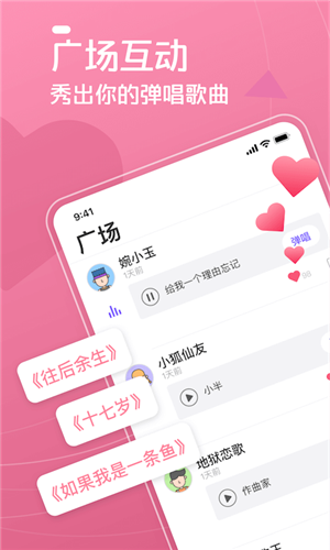 1、彈唱:彈唱達(dá)人安卓版中海量歌單供你選擇,推薦流行等多類(lèi)曲風(fēng),彈唱你喜歡的歌曲。