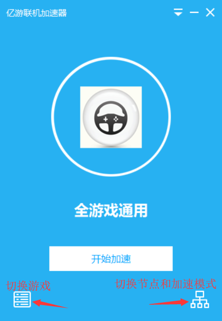 億游加速器如何切換要加速的游戲?初次使用億游聯(lián)機(jī)加速器的用戶(hù),當(dāng)您打開(kāi)軟件登陸后客戶(hù)端默認(rèn)加速游戲?yàn)槿螒蛲ㄓ?,您可以自由切換想要加速的游戲:
