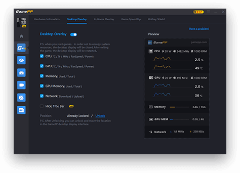 提供了CPU溫度、頻率、占用,GPU的溫度、頻率、占用、風(fēng)扇轉(zhuǎn)速,顯存占用、內(nèi)存占用,網(wǎng)絡(luò)上傳、下載速度的顯示,用戶可以根據(jù)自己的需求選擇顯示的硬件運(yùn)行信息。這可以幫助用戶更清晰直觀的了解自己的電腦運(yùn)作狀態(tài)和健康狀況,幫助用戶更高效地使用電腦。
