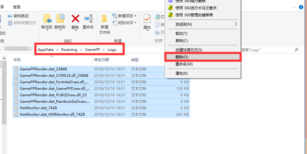 第四步: 在游戲加加目錄下有Logs文件的情況刪除里面的全部日志文件