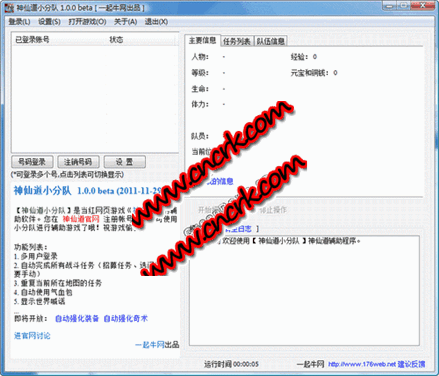 1. 多用戶登錄2. 自動(dòng)完成所有戰(zhàn)斗任務(wù)(招募任務(wù)、選門派等需要手動(dòng))
