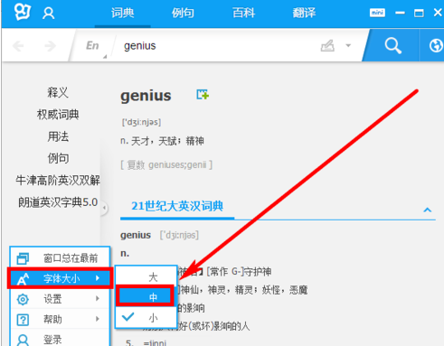 隨便查詢一個(gè)單詞,可以看到現(xiàn)在界面上的字體大小,如下圖所示: