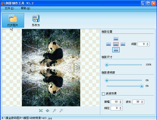 倒影制作工具用戶設(shè)定好圖像與倒影的間距,倒影鏡像百分比,倒影透明度后該軟件即可自動(dòng)生成圖像倒影,還可設(shè)置倒影波浪特效。只需簡(jiǎn)單幾步操作就可以為自己的圖片添加倒影效果,完全傻瓜式操作。支持各種常用圖片格式。只需簡(jiǎn)單幾步操作就可以為自己的圖片添加倒影效果,完全傻瓜式操作。