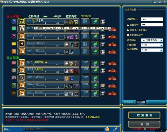 2、右側為游戲局設置,如果您是房主,可對房間名稱、密碼、游戲模式、進入限制等進行設置;