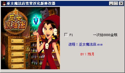 巫女魔法店中文漢化版作弊器 功能: F1 一次給8888金錢,幾乎無限金幣了
