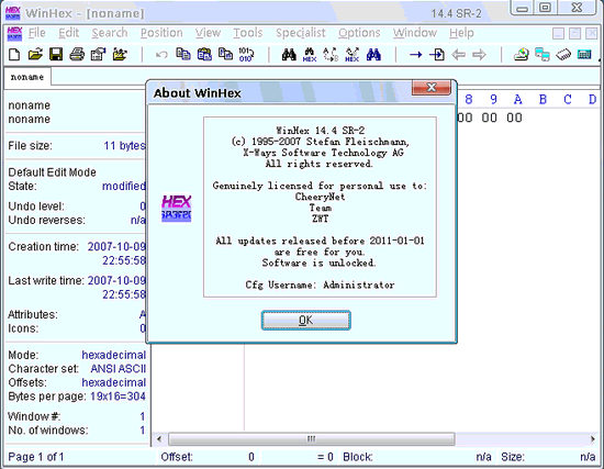 WinHex是一個(gè)專門用來對(duì)付各種日常緊急情況的小工具。它可以用來檢查和修復(fù)各種文件、恢復(fù)刪除文件、硬盤損壞造成的數(shù)據(jù)丟失等。同時(shí)它還可以讓你看到其他程序隱藏起來的文件和數(shù)據(jù)??傮w來說是一款非常不錯(cuò)的 16 進(jìn)制編輯器。得到 ZDNetSoftwareLibrary 五星級(jí)最高評(píng)價(jià),擁有強(qiáng)大的系統(tǒng)效用!請(qǐng)不要解壓至中文名文件夾下,否則運(yùn)行出錯(cuò)!