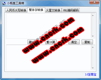 小瓶蓋工具箱 v1.0綠色免費版下載 小瓶蓋工具箱是一款小巧實用的轉(zhuǎn)換工具,可以人民幣大小寫互轉(zhuǎn)、繁簡體中文互轉(zhuǎn)、火星文字體互轉(zhuǎn)、URL編碼解碼,轉(zhuǎn)換后點擊復(fù)制即可粘貼到你要編輯的文本框。很方便實用!