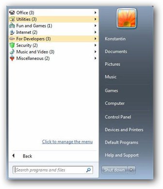 2、可以按自己的喜好添加更多的分類(lèi),菜單項(xiàng)也可以移動(dòng)到其他分類(lèi)中。這兩個(gè)功能既可以在軟件界面的“change the menu settings”中進(jìn)行,也可以在開(kāi)始菜單的右鍵中操作,非常的靈活和方便。