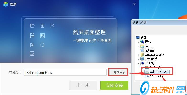 正在安裝酷屏,酷屏界面可以幫你一鍵整理電腦桌面,還你一個(gè)干凈有條理的電腦桌面;