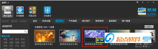 酷屏是款集成壁紙、主題資源于一體,自動(dòng)播放更換壁紙的桌面美化軟件,軟件提供大量的壁紙和主題,操作簡(jiǎn)單??崞敛粌H集成近海量的XP電腦主題、Win7主題、桌面壁紙、電腦登陸界面、鼠標(biāo)指針、桌面屏保、文件夾圖標(biāo)……等桌面美化資源??崞吝€提供:CMD查詢、計(jì)算機(jī)、視頻播放器、圖片播放器、瀏覽器、桌面清理、桌面事件等精美桌面應(yīng)用,酷屏使您的Windows桌面更加實(shí)用和多彩。