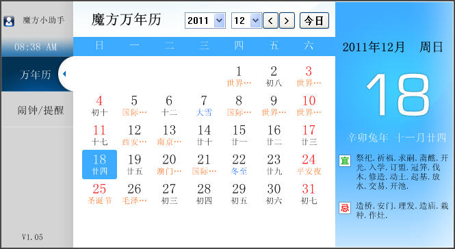 包含節(jié)日、節(jié)氣、農(nóng)歷、宜忌,還可以方便的隨時(shí)查詢?nèi)我庖荒甑臅r(shí)間,碉堡了。