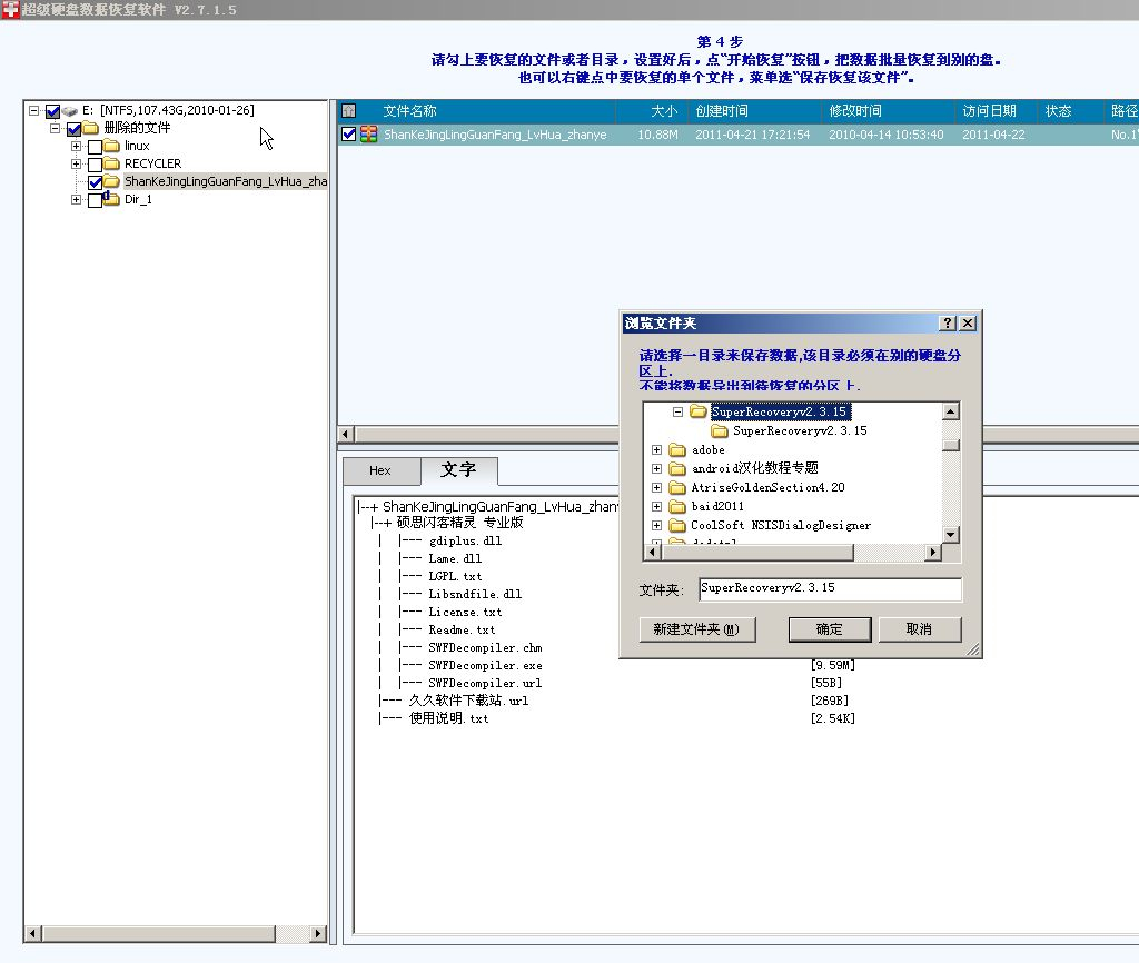 超級硬盤數(shù)據(jù)恢復(fù)軟件(SuperRecovery)是一款簡單易用且功能強大的文件恢復(fù)軟件,可以恢復(fù)硬盤、U盤、內(nèi)存卡、移動硬盤上被刪除的文件、被格式化的盤符、硬盤分 區(qū)丟失、硬盤重新分區(qū)或者打開分區(qū)時提示需要格式化的文件。