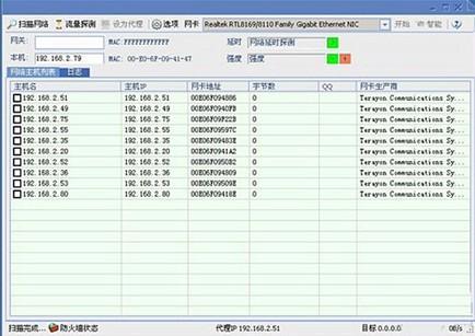 點(diǎn)擊“掃描網(wǎng)絡(luò)”或者“流量探測(cè)”來(lái)實(shí)現(xiàn)檢測(cè)局域網(wǎng)中的電腦。為了保密起見(jiàn),建議選擇“流量探測(cè)”。如果“流量探測(cè)”找不到要控制的電腦,在檢查網(wǎng)關(guān)的IP地址沒(méi)有錯(cuò)誤之后,才使用“掃描網(wǎng)絡(luò)”功能。也可以在主機(jī)列表上點(diǎn)擊右鍵選擇“添加主機(jī)”手動(dòng)添加要控制的電腦。