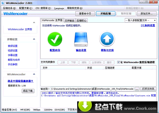 WisMencoder 是基于Mencoder和Avisynth為核心的免費的視頻壓縮、轉(zhuǎn)換軟件,能夠把您的電腦上的所有視頻格式,包括avi,mpg,mpeg,rm,rmvb,wmv,asf,mp4,mov,dat,vob,flv等格式以最快的速度和最高的質(zhì)量轉(zhuǎn)換為AVI格式.
