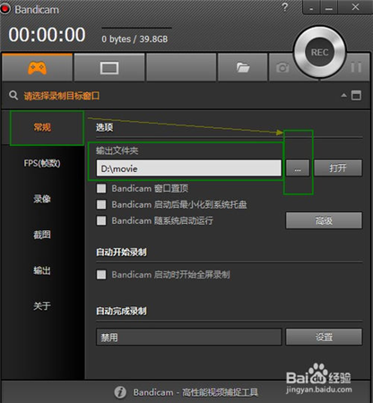完成注冊了之后,重新打開Bandicam。你將發(fā)現(xiàn)“未注冊”字樣已經(jīng)沒有了。這里推薦你要做的是先設(shè)置“輸出文件夾”。