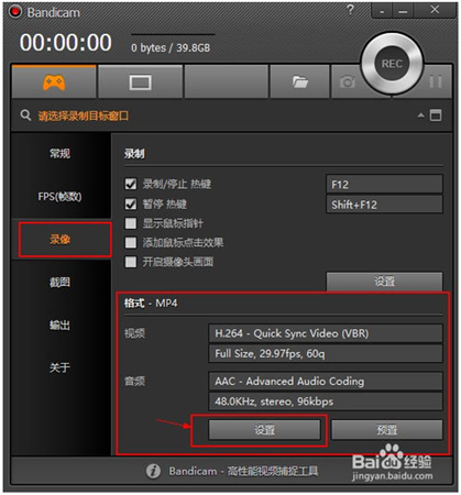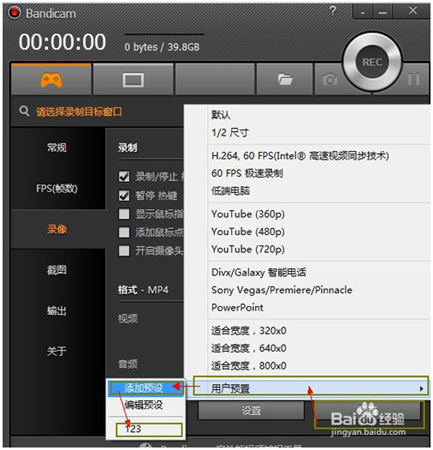 區(qū)域錄制的分辨率(錄制框大?。┑脑O(shè)定推薦你直接采用里邊的預(yù)設(shè)(比較規(guī)范);