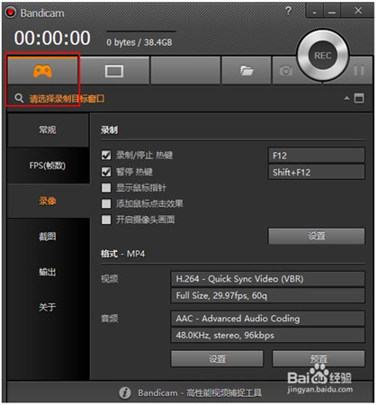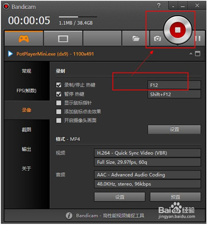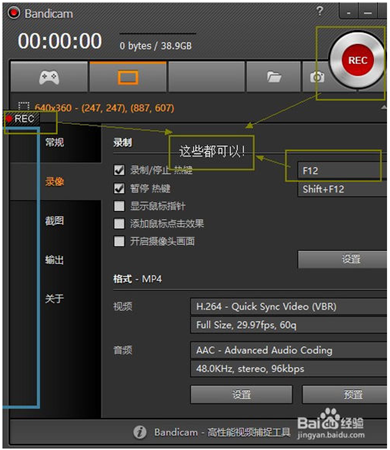 點(diǎn)擊“REC”按鈕或者使用快捷鍵F12,即可開始錄制。