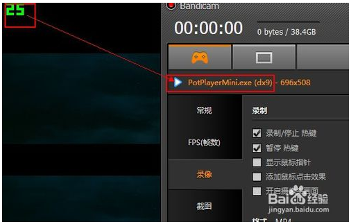 最小化或關(guān)閉其他的視頻或者游戲窗體并在要錄制的窗體中操作一次讓他屬于活動(dòng)狀態(tài),此時(shí)要錄制的窗體左上角將會(huì)出現(xiàn)一個(gè)數(shù)字(fps),Bandicam便會(huì)自動(dòng)綁定。