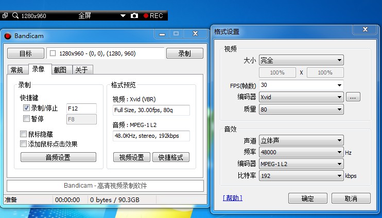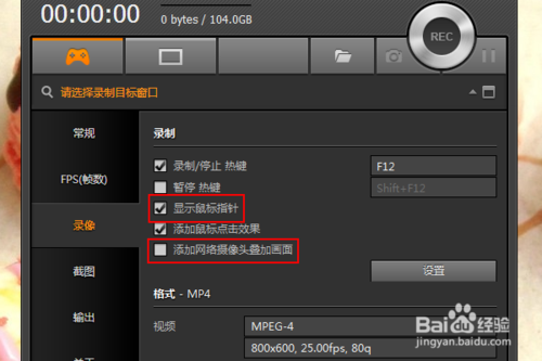 你可以在這里設(shè)置視頻尺寸,比如全屏錄制,640x480區(qū)域錄制,