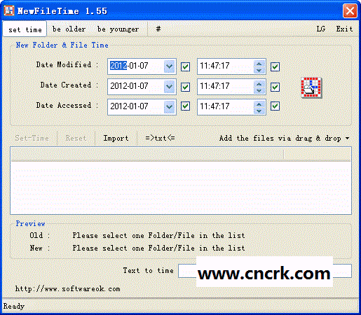 NewFileTime v3.45 多國語言綠色免費版 newfiletime是一個小而有效的工具,為您提供便捷的更正和操縱時間戳記的任何文件和文件夾在您system.several文件和/或文件夾,可以派出在同一時間內(nèi),新增檔案,通過簡單的拖放或由進(jìn)口從folder.in任何情況下,NewFileTime會打開不同的方式,使其盡快這樣做。您可以使檔案的比例年輕或年紀(jì)較大,或有針對性的具體時間