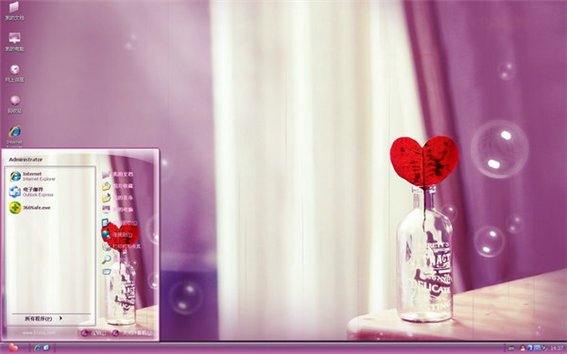陽光心桌面主題 簡體中文官方安裝版 神秘夢幻的紫色加上稚嫩陽光、蕾絲窗簾、彩色泡泡構(gòu)成一幅唯美的景象,還有那透明玻璃瓶中的心,那就是愛情最真摯的表現(xiàn),還等什么呢?心動不如行動,趕緊將這唯美的桌面主題抱回家吧!