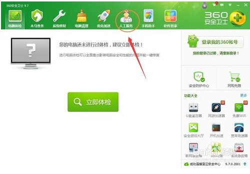 1、打開360安全衛(wèi)士,單擊“人工服務(wù)”