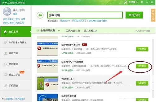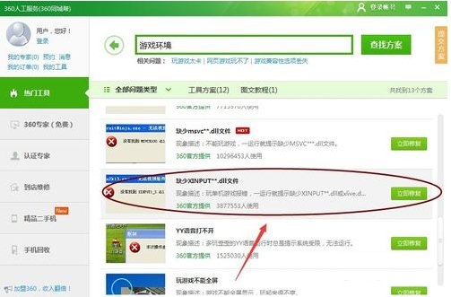 方法三:安裝360安全衛(wèi)士使用功能大全中360系統(tǒng)急救箱功能,使用系統(tǒng)文件修復(fù)區(qū)手工添加xinput1_3.dll然后點(diǎn)擊添加即可修復(fù)。