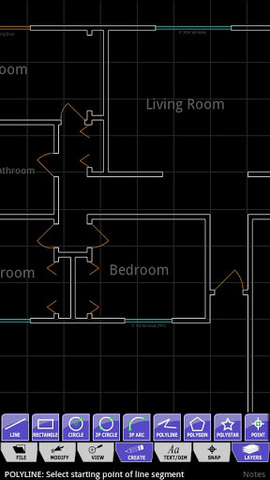 AndCAD是安卓手機(jī)上的CAD制圖工具,雖然受到手機(jī)硬件和環(huán)境的局限,不過還是能夠輕松導(dǎo)入DWG和DXF格式的CAD文件,目前打開或?qū)氲奈募笮簳r(shí)被限定在500KB以下,配置較低的設(shè)備可能會(huì)顯示強(qiáng)制關(guān)閉錯(cuò)誤,這意味著你沒有足夠的內(nèi)存來打開文件。