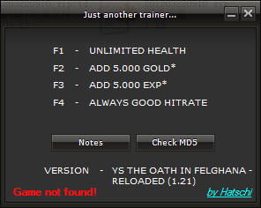 使用說明: F1-無限健康 F2-獲得5000金幣 F3-獲得5000EXP。 F4-獲得很好的命中率