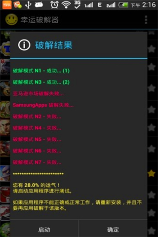 4、點擊“應(yīng)用”以后,程序會自動進行破解,根據(jù)被破解的游戲體積和你的設(shè)備性能的不同,此過程將消耗30秒到2分鐘不等,請耐心等待。破解完之后會彈出下圖所示圖片,一般情況下只要運氣不是0%,都是可以成功破解的,趕快點擊“啟動”試試看吧!