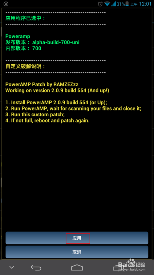 選擇Poweramp破解菜單
