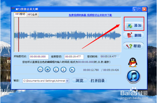 2、點(diǎn)擊添加,加入一首自己想要編輯的mp3;
