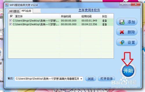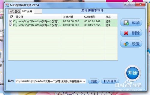再次點(diǎn)擊“添加”按鈕,導(dǎo)入另一個mp3文件,圖例是兩首音樂,但可以以以此類推添加多首音樂