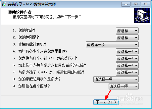 填寫一份調(diào)查問卷,點(diǎn)擊下一步