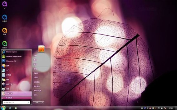 透明樹葉桌面背景 簡體中文官方安裝版 win7電腦主題