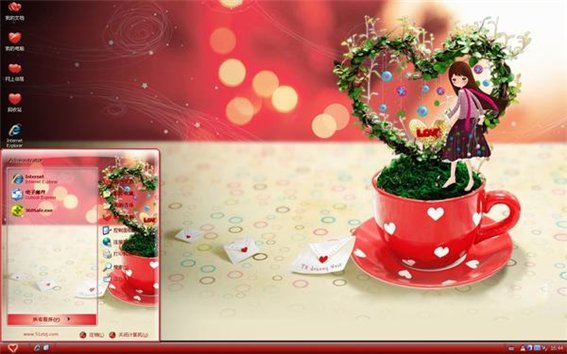 在這春暖花開的三月里,愛情就像一陣風吸引著眾多人的追隨,這款主題的壁紙很具有特色,愛心杯中生長著愛心樹,還有那一封封的情信,將彼此緊密相連,喜歡這款愛情桌面主題的朋友們趕快下在吧!