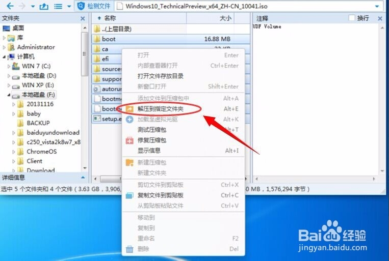 打開(kāi)ISO文件以后,再把所有的文件都選中,再點(diǎn)擊一下右鍵 ,然后再點(diǎn)擊【解壓到指定文件夾】然后再選擇一個(gè)盤(pán)符的主錄,再確定,再解壓。