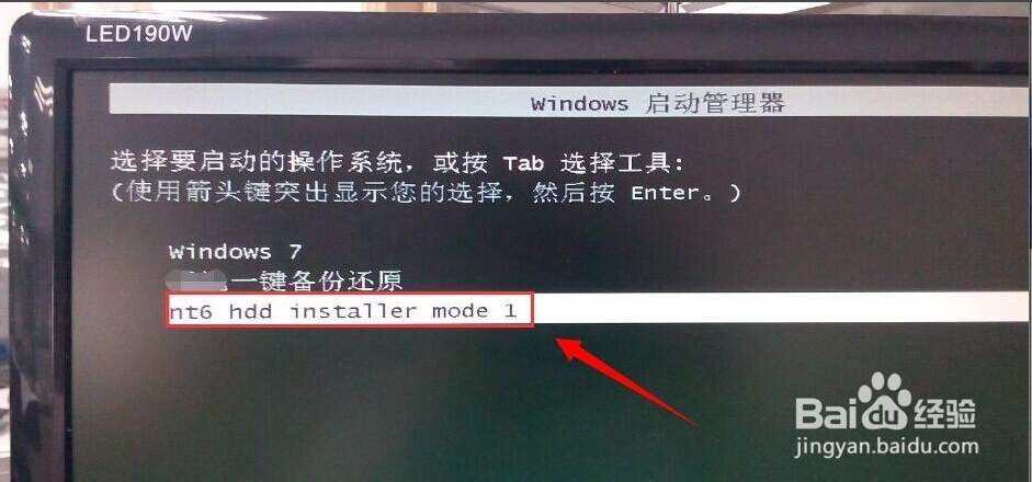 重新啟動(dòng)電腦后,就會(huì)在選擇操作系統(tǒng)的界面下多出一個(gè)【nt6 hdd installer】選擇它進(jìn)入。