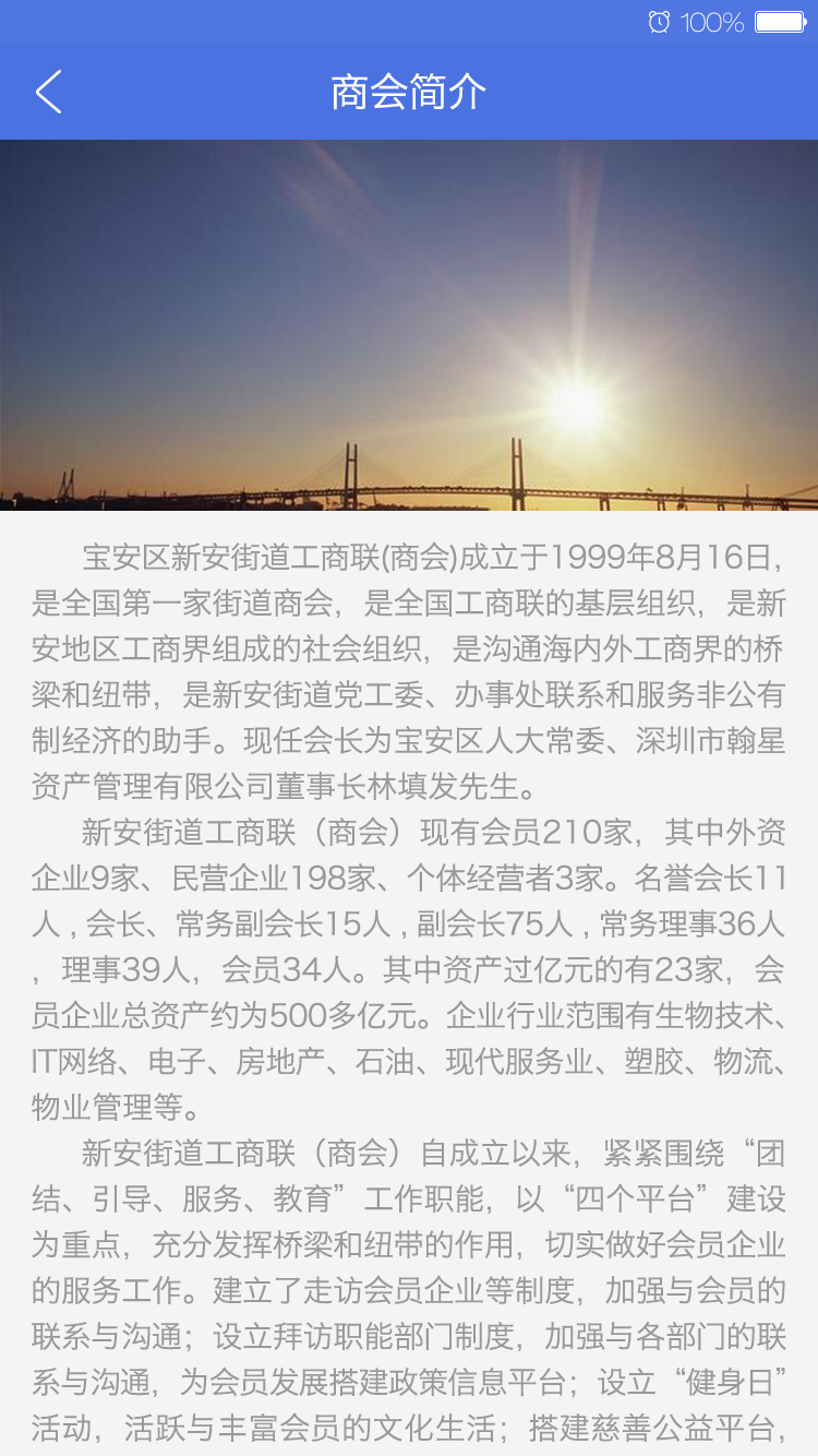 新安商會app是寶安區(qū)新安街道工商聯(lián)(商會)對外宣傳的窗口,是全國率先成立的街道商會。移動互聯(lián)網(wǎng)時代,給會員企業(yè)之間架起了無邊界的移動溝通渠道,為會員企業(yè)的盡情展示自我,交流互動,獲取商機,插上移動互聯(lián)網(wǎng)的翅膀。更能讓商會以更創(chuàng)新的方式,服務(wù)會員企業(yè),加強了商會和會員、會員和會員企業(yè)之間的溝通和聯(lián)系。
