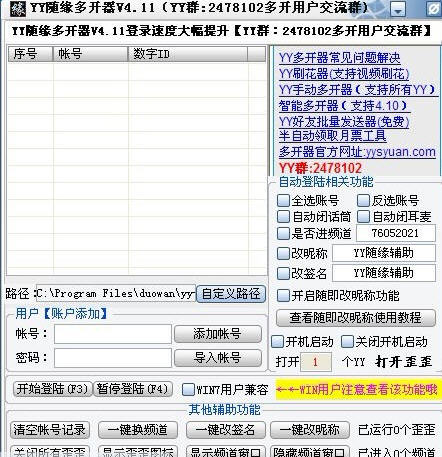在YY隨緣多開器v5.0國慶版基礎(chǔ)上,穩(wěn)定了YY的登陸性能